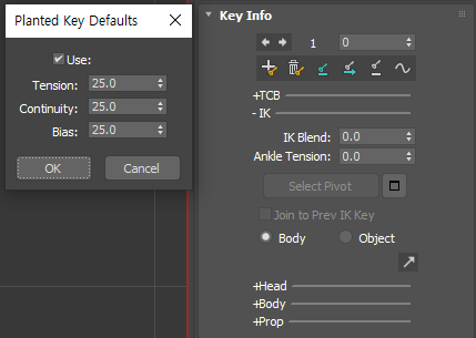 - IK와 FK를 어떻게 섞고 KeyFrame 간 애니메이션을 어떤 특성으로 보간(Interpolation)할지를 결정하는 값