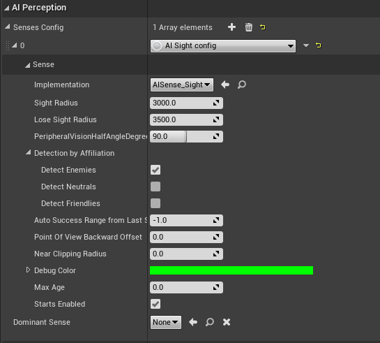 - 인지 기능을 만드려는 대상(주로 AI)에 AI Perception Component를 생성