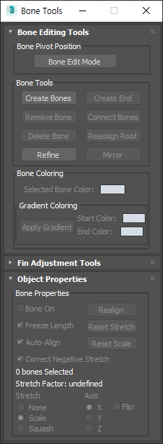 - Bone Object는 Position, Rotation, Scale 정보만 가지고 있는 포인트헬퍼(Point Helper)라고 생각하는 방식이 Bone에 대한 이해를 더 쉽게 도와줌.