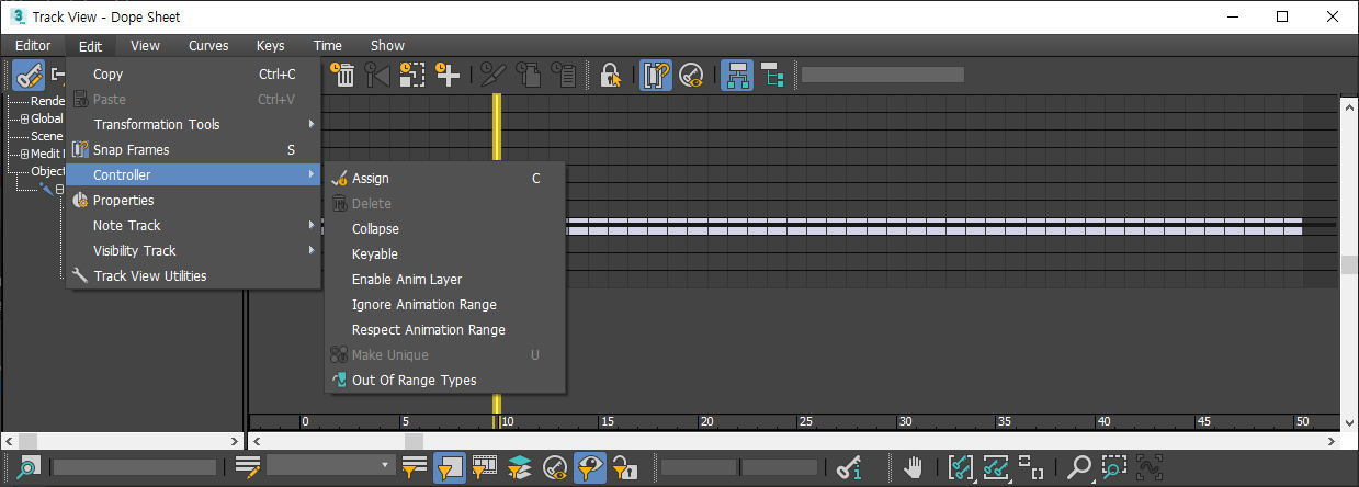 - Expression Controller나 Script Controller와 같은 절차적인 컨트롤러(Procedual Controller)들은 애니메이션 구간이 미리 정해져 있음.